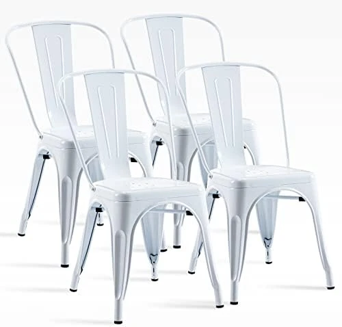 - {LIGHTWIGHT AND SPACE SAVING}:Easy to move around and you can stack the metal chair when you are not using them or push the dining chair under the table to save space.