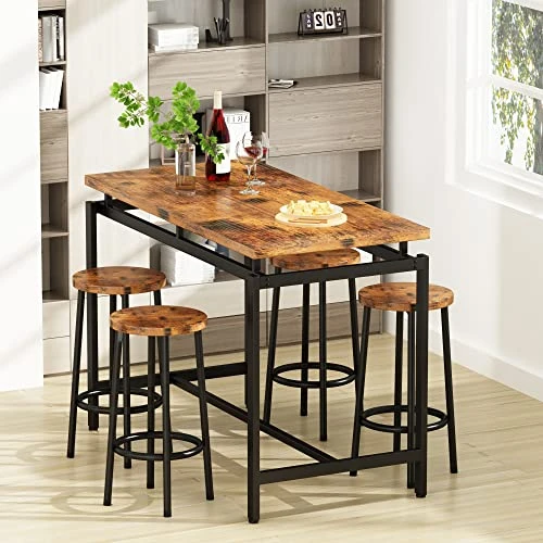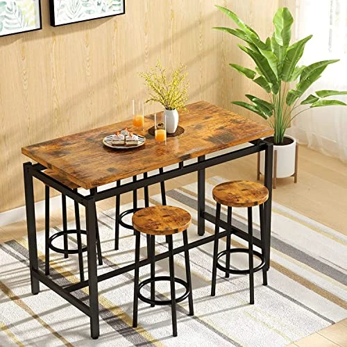 - 【Bar Table and Chairs Set】This kitchen table set includes a bar table and 4 round bar stools, stylish and minimalist design will be never out of date .The dining table set compact design creates casual seating for a bar area or a simple dining solution for 4 people and more.Thanks to kitchen table and chairs set suitable size, it can be widely used such as pubs, bistros,restaurant,living room,patio, outdoor or indoor etc.