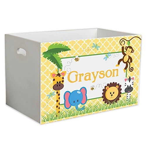 Our MyBambino Personalized Jungle Babies Childrens Nursery White Open Toy Box is a safe and useful place to store all those toys and games Clean up is quick and easy