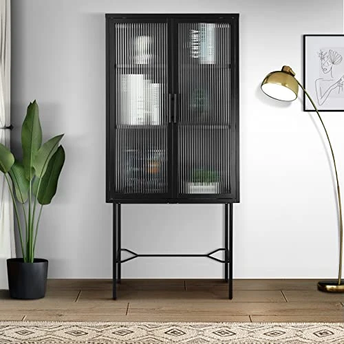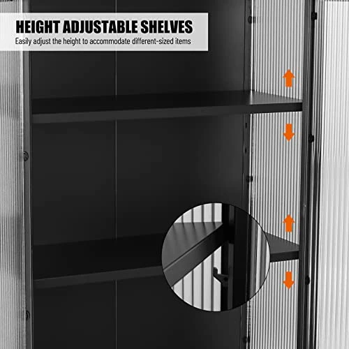 - 【ADJUSTABLE SHELVES FOR VERSATILITY】Experience the ultimate flexibility with our interior adjustable shelves. Easily customize the height to accommodate items of various shapes and sizes. Whether you have tall vases or small collectibles, our storage cabinet can adapt to your needs effortlessly.