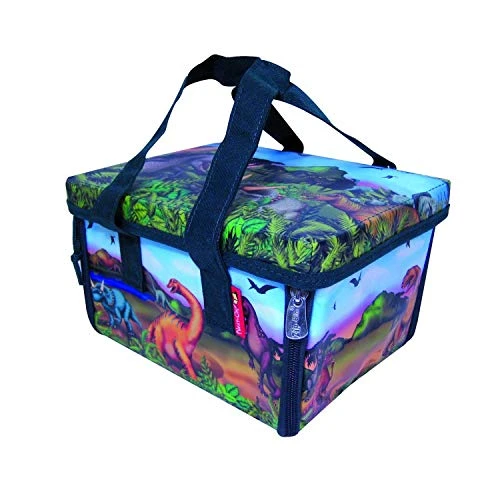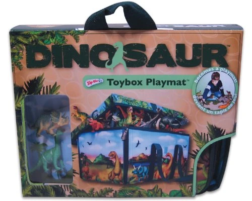 The Dinosaur storage bin’s dramatic exterior theme identifies the contents and will look great in your child’s room. When the bin is unzipped it becomes a dinosaur island play mat! This activity mat is perfect for playing with dinosaurs animals vehicles boats action figures etc. Fantasy play is encouraged by a prehistoric world featuring a volcano a river a tar pit and a mysterious cave. When play is done the play mat becomes the storage bin in a zip capturing the toys inside. Colorful durable wipe-clean surfaces Stackable portable and collapses flat for storage Sturdy heavy-duty zippers Lid fasteners Meets child safety standards Patent pending ZipBin Dinosaur Mini Play Set (A1043X2) Size: Mini Dimensions: Bin: 8 x 6 x 5 inches Mat: Mat: 18 x 16 inches 3 Plastic Dinosaurs included About ZipBin What happens when a storage bin unzips to become an imaginary world for kids? Or a place where you can work relax or create? What happens when you can put it all away in a zip? Playtime is fun imaginative and clever. Things seem easy organized and together. Your life has been Zip-lified! ZipBin products are A New Way to Play and Put Things Away. See our designs for kids and for home and recreation by clicking on the products above. Playscape bins convert back and forth from storage form to activity/play mat. Play Sets include Playscape bins plus toys. Creative Kits include work/play surfaces that convert back and forth between activity and portable storage. All ZipBin products fold flat and fit into their lid for compact storage. ZipBin products are the proud winners of many Industry Awards including: Design Defined Award – International Housewares Association Best Smart Play/Smart Toy Award – Dr. Toy Seal of Approval – National Parenting Center iParenting Media Award Overall Gra