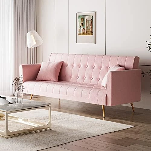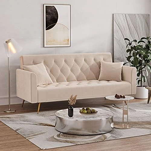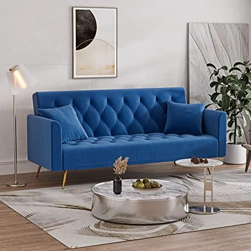 - 【STURDY AND DURABLE】The velvet sofa bed has 5 golden durable tapered legs, which will not crack as easily as wooden legs. It ensures that the sofa can bear heavier weight, and even if two 300-pound people sit on the sofa without deformation