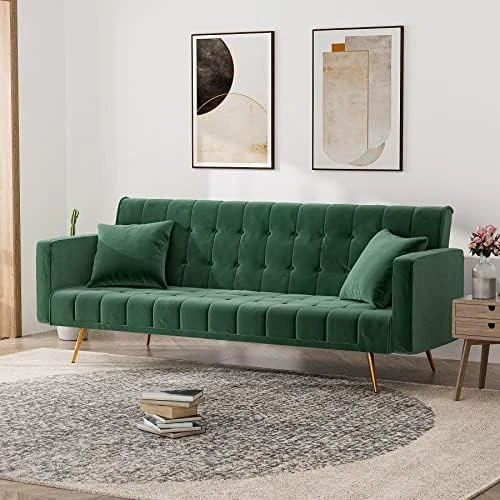 - 【HIGH-QUALITY VELVET MATERIA】This upholstered sofa bed is made of soft Velvet Material ,There are also flexible high-quality spring coils that are evenly stressedand, it is not easy to wrinkle and deform (Two pillows are not included)