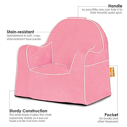 - Feathery light and has a handle so your little one can tote this chair to their favorite spot. Quiet time, to story time, to movie time and back again! Handle for carrying and large side, easy-access pocket for books and other favorites.