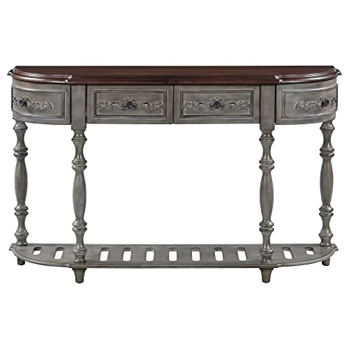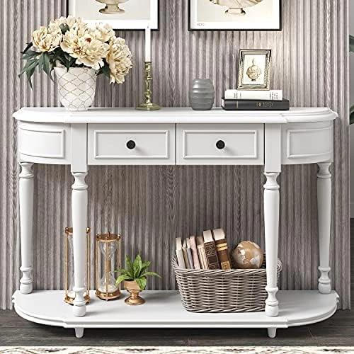 - Retro Console Table:The circular curved design at both ends, as well as the plain craft lines, make this console table with the characteristics of Romanesque. The detail of each part of the craft is also particularly rigorous and exquisite. Layer design at the edge of the desktop and double layer design at the bottom plate edge reflect the delicacy of classical art. Both ends of conical table legs made the adornment of hourglass design, it integrates the characteristics of the architecture.