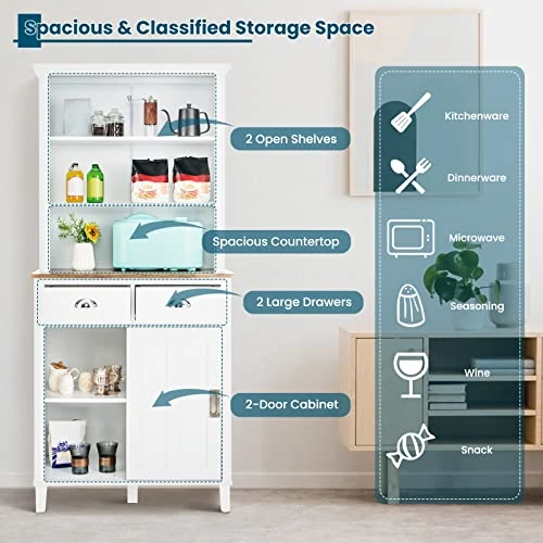 - Versatile and Stylish: Our multipurpose kitchen cabinet has a sleek and elegant appearance that complements any interior decoration style. Whether you use it as a pantry cabinet, microwave oven stand, or cupboard, it’s a functional and attractive addition to your kitchen.