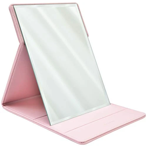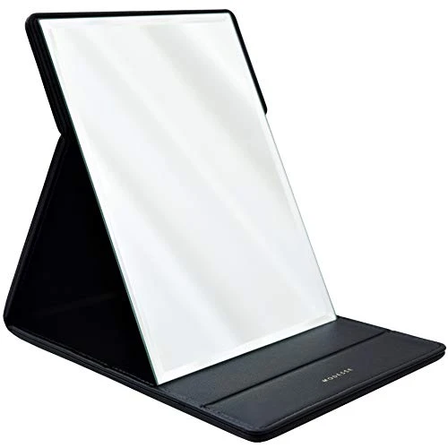 - LARGE, BUT PORTABLE TRAVEL SIZE – Can’t travel right now? Take it to your next camping adventure, car road trip, or RV expedition. Measuring 9.0 in x 6.5 in, the mirror is large enough to do your hair and makeup, but small enough to take around for touch-ups on the go. With its slim, lightweight design, it will easily fit into your purse, backpack, locker, luggage, glove compartment, and more. Folds flat into the size of an iPad for easy transport and storage.