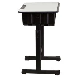 Flash Furniture Billie Student Desk With Grey Top And Adjustable Height Black Pedestal Frame