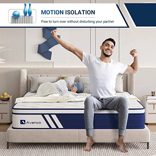 - COOLING & COMFY SLEEP: Avenco 12″ queen size mattress features gel-infused memory foam to dissipate body heat and to help avoid overheating during sleep. Independent pocketed spring system enhances air circulation to prevent trapped heat, giving you a cooler and comfy sleep.