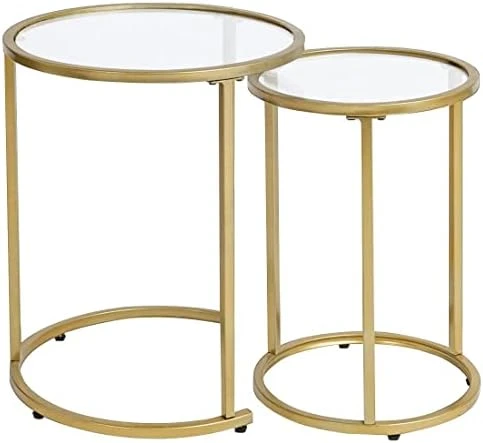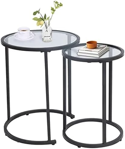- ✅ Save Space: The nesting tables consist of two round coffee tables, one large and one small, the larger of which is designed with a unique semi-circular steel frame. If you want more space, you can slide the small one under the large one.