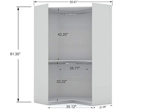 - 90° Open Doors with Soft Close Hinges. Perfect for a Walk-in Closet or in any Corner in a Room.