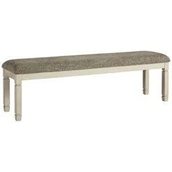 Two-Tone Upholstered Dining Room Bench 65″ W X 16″ D 20″ H Brown Farmhouse Antique White Finish
