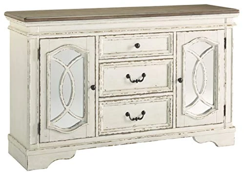 - HANDSOMELY CRAFTED: Made of veneers, wood and engineered wood. Designed with 3 smooth-gliding, dovetail construction drawers with felt bottoms, 2 cabinet doors and 2 adjustable shelves