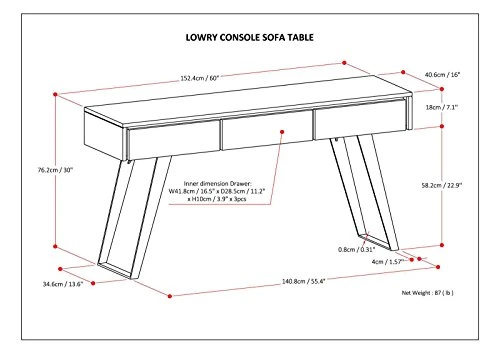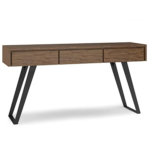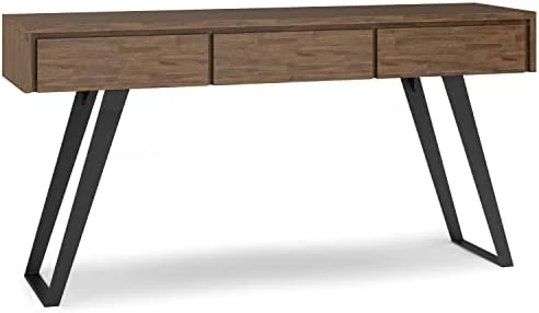 - Console Table Inrial design includes solid metal angled legs for reliable support