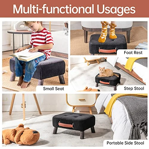 - 🐼[Multifunctional usages]–small ottoman can not only be used just a foot rest but also can be a bedside step stool in your bedroom. What’s more, if you have a pet, it also can be used for your cute friend in your living room, patio or just beside your sofa and under the desk
