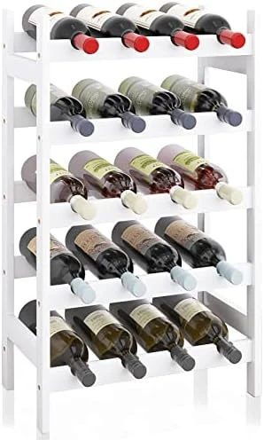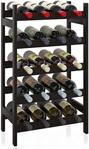 - ★ LARGE CAPACITY BUT SPACE SAVING: 4 bottles on each shelf, this nice 5-tier wood wine rack can easily stock 20 bottles of wines in total. Boasting a narrow vertical design, it is a wine rack for space efficient storage in your living room, kitchen, dining room, pantry or wine cellar etc.