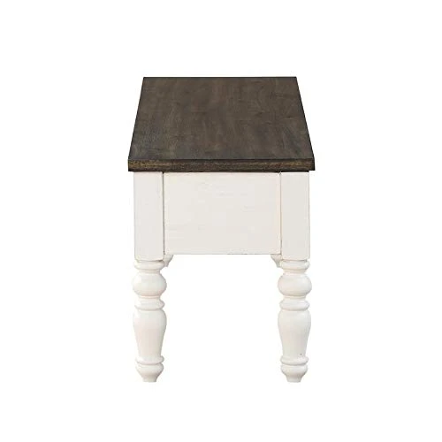 - Styling details include turned legs, half-cup pewter hardware and picture frame apron and drawers
