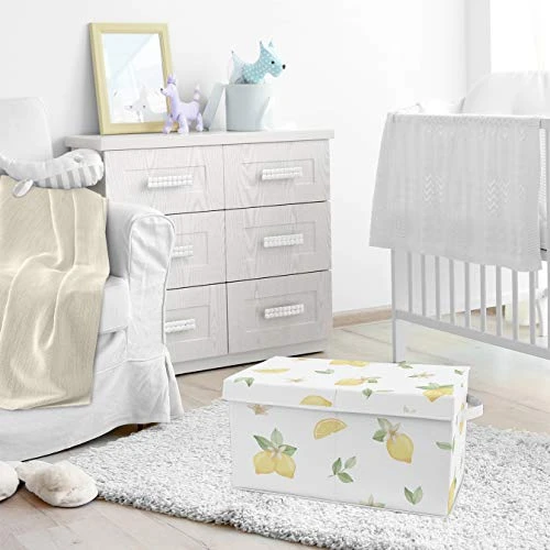 - Features a yellow, green, beige and white lemon floral print