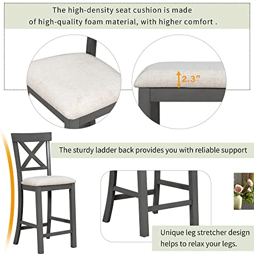 - 👉Superior Comfort👉 The high-density seat cushion is made of high-quality foam material, with higher comfort and a thickness of 2.3 inches, which provides you with a soft sitting experience and allows you to enjoy delicious food in a relaxed state. The sturdy ladder back provides you with reliable support, and the unique leg stretcher design helps to relax your legs