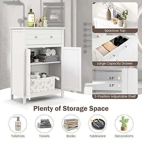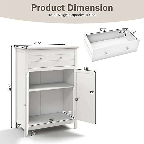 - 【Wonderful Addition for Home】Comes with smooth surface and unique design, our bathroom cabinet has a good look which is suitable for matching any decoration style in your home. The cabinet has a stylish groove design on drawers and doors for a touch of fashion. And the delicate metal handles are textured and glossy.