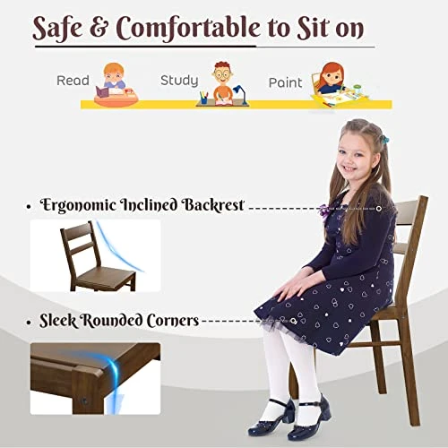 - Comfortable Ergonomic Chair: The wooden chair features an ergonomically inclined backrest that can give proper support to kid’s back. And by conforming to the spine curve, the chair will also help relieve fatigue and get them into correct sitting posture. Besides, the edges and corners of the chair are round and sleek, so as to protect kids from scratches.