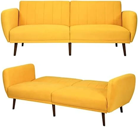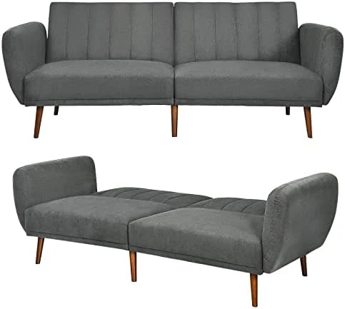 - 【Solid Construction & Rubber Wood Leg】This modern futon is supported by 6 solid rubber wooden legs and is made of a wooden frame, metal spring seat cushions, and cotton linen. The structure is sturdy and durable, and the futon bed can withstand a weight of up to 600 pounds.