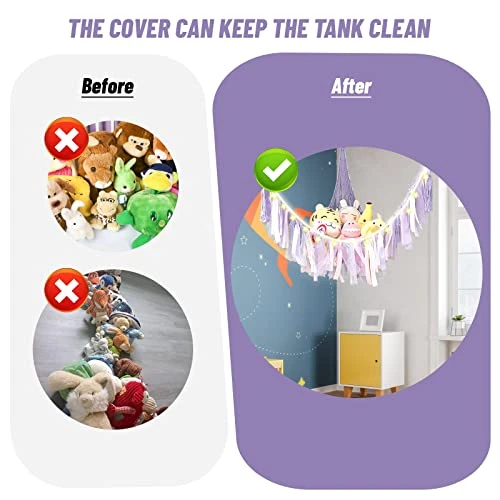 - Wide Use: The stuffed animal storage hammock can not only store children’s stuffed toys but also can store towels, blankets, and other items. You can install the stuffed animal storage hammock in your living room or bedroom to store the clutter.