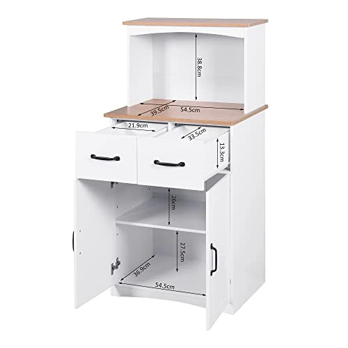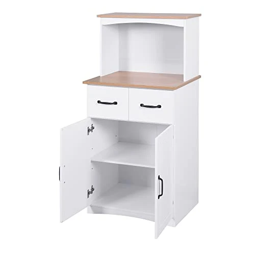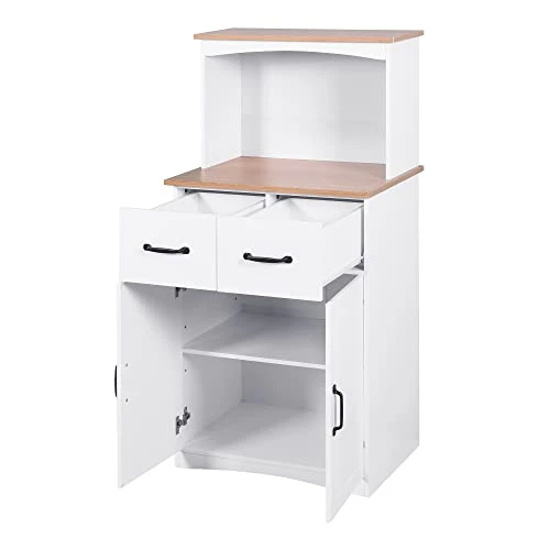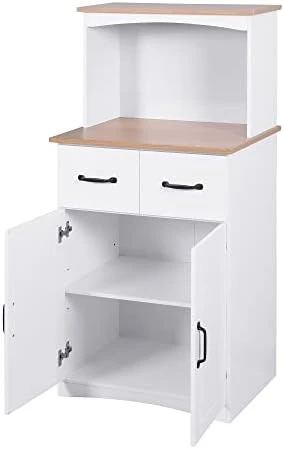 - ♥ Hassle-Free Storage: Featured with a cabinet with doors and adjustable shelves, it can meet your different storage needs. There is an open shelf in the middle for home appliences like microwave or coffee maker. You can use 2 drawers to store tableware, knife fork, seasonings