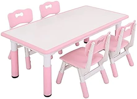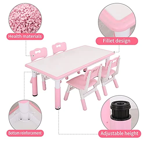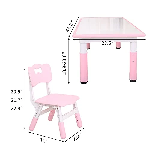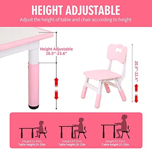 - HEIGHT ADJUSTABLE DESK & SEAT: Both table and chair can adjust the height. The table to adjust from 14.6”-24.8”, 3 level for chairs to adjust from 20.1”-21.7”, with 23.6”*47.3” big tabletop size, suits boys and girls of 2 years-10 years old, 1″ adjustable table pad solve the problem of uneven ground effectively; inclined legs prevent children from flipping while playing games.
