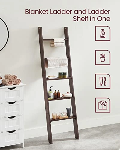 - [Rustic Charm] The leaning profile with a rustic burgundy tone gives this decorative ladder a rustic farmhouse flair to your space—living room, bathroom, bedroom, and more