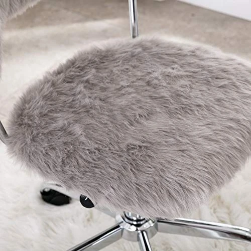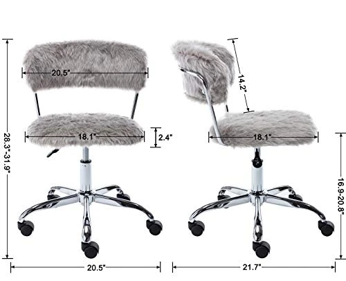 - COMPONENTS: Soft to touch faux fur fabric upholstery. Sturdy metal pneumatic and chrome base.