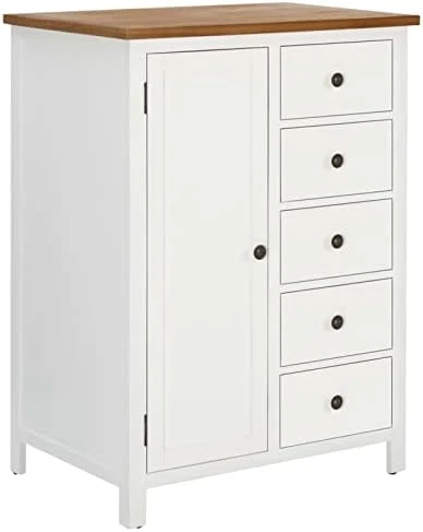 - 【Door and Drawer】The wooden wardrobe features one door and five drawers.