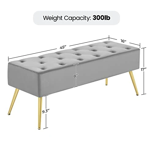 - 【Specifications】Materials: velvet, foam, plywood, metal; Color: gray; Overall Dimension: 45 × 16 × 17’’ (L × W × H); Overall Weight Capacity: 300 lb; G.W.: 23 lb ; N.W.: 18 lb